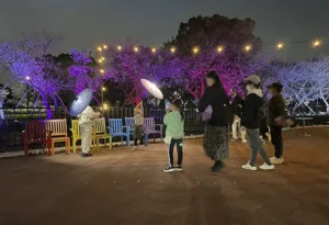 大阪府大東市 深北緑地にて開催中のイベント「夜桜灯り散歩」にて、光る和傘「傘蛍」をご使用いただいております。